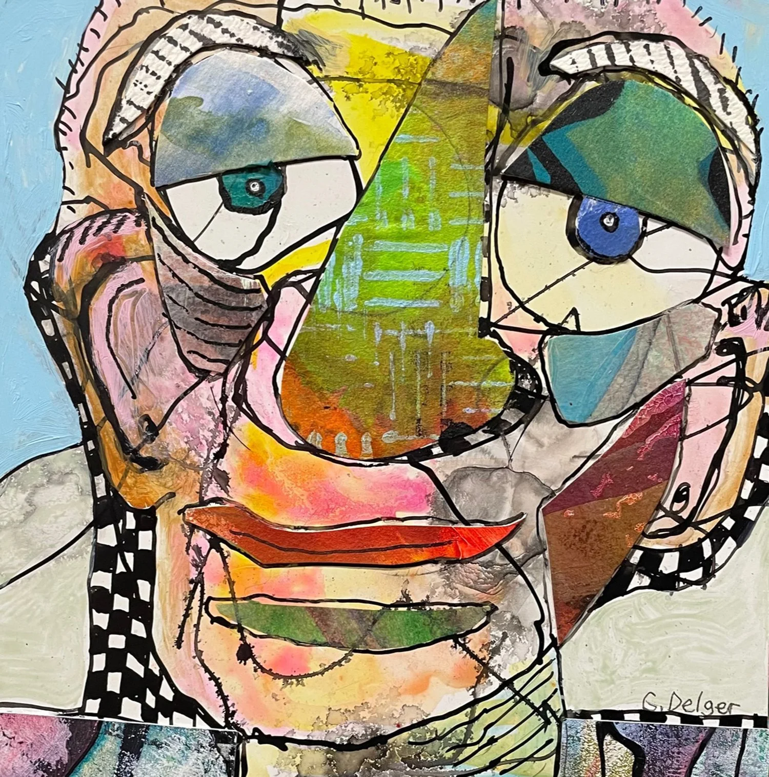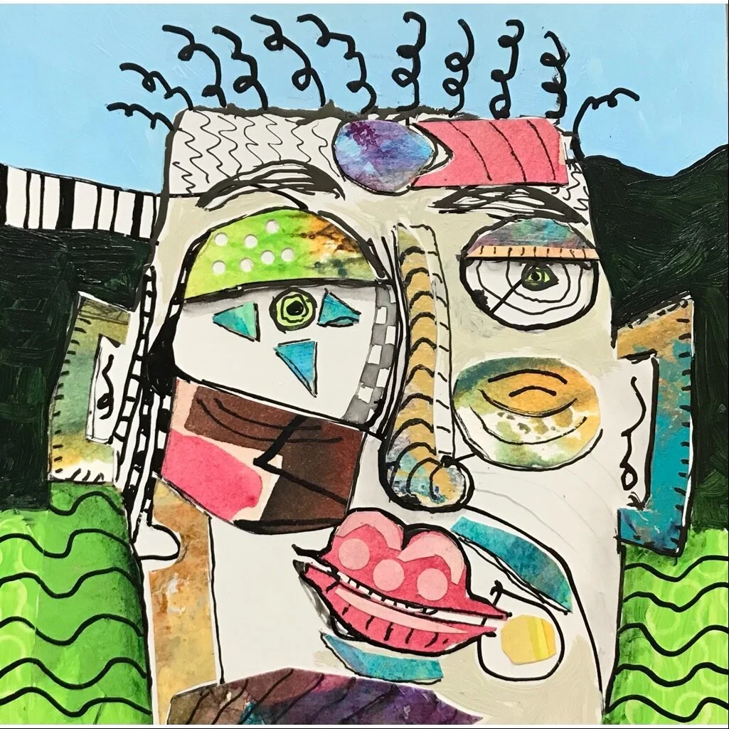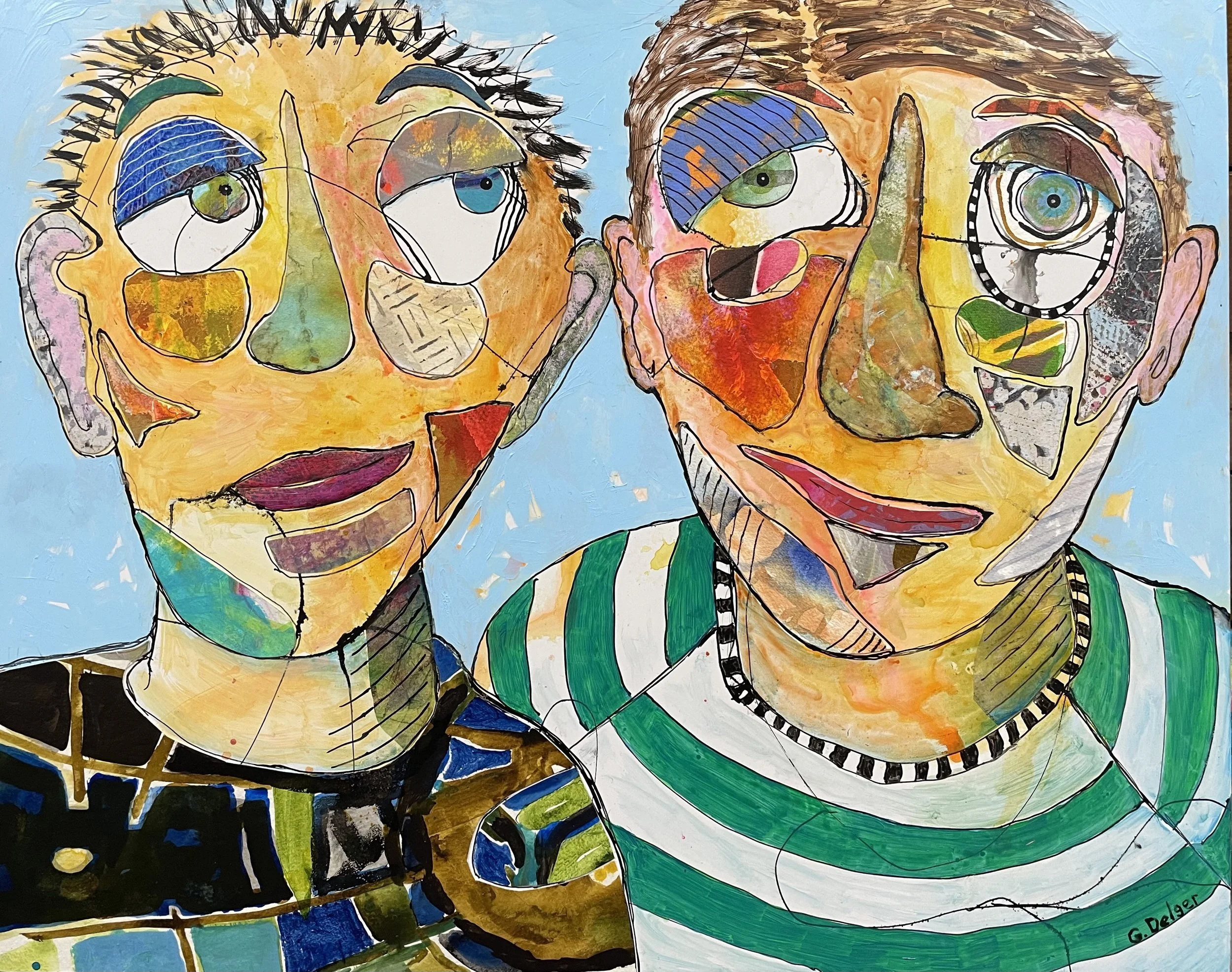 "Two Heads are Better than One" 16 x 20 Acrylic and collage on cradled panel.