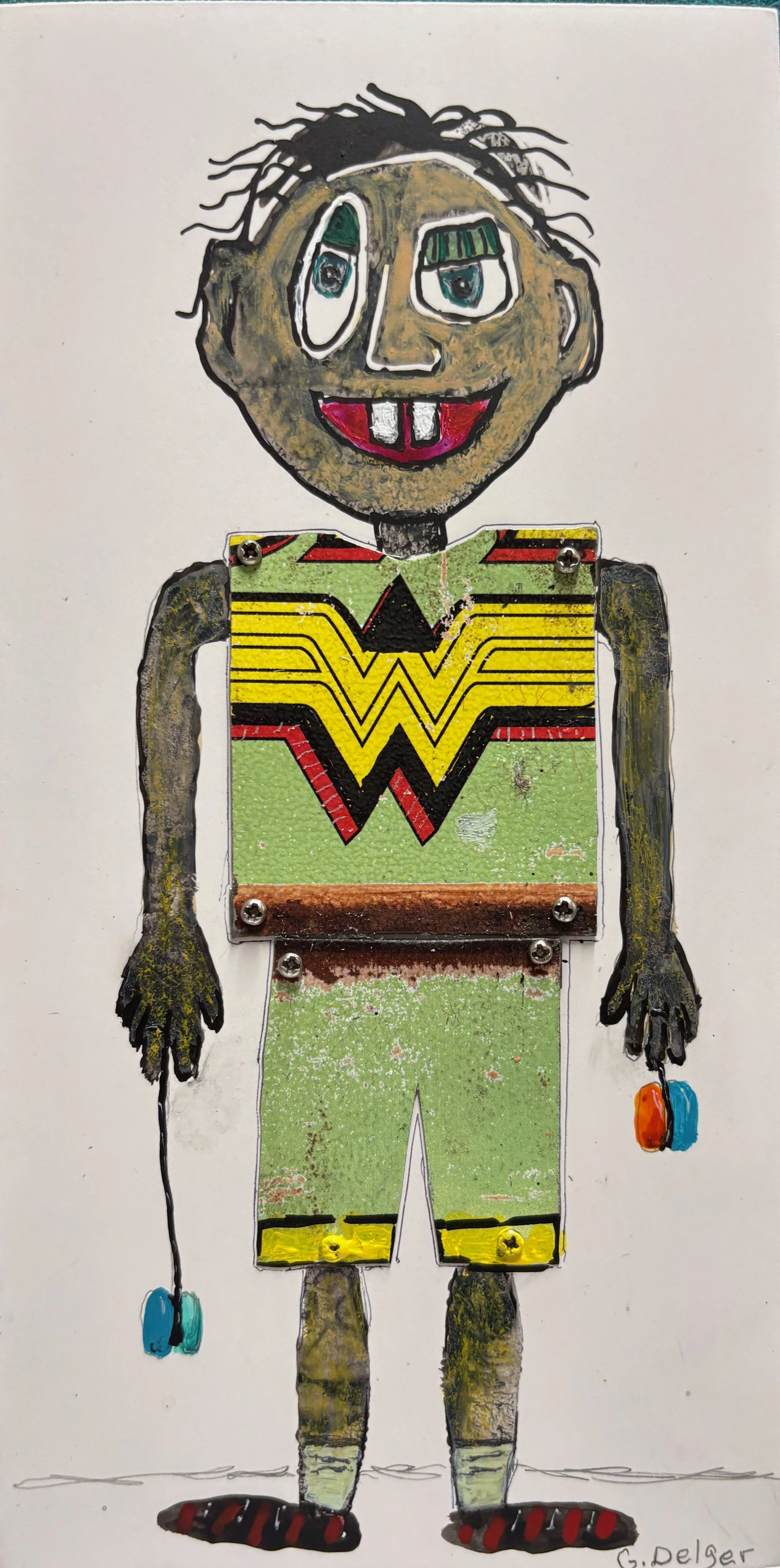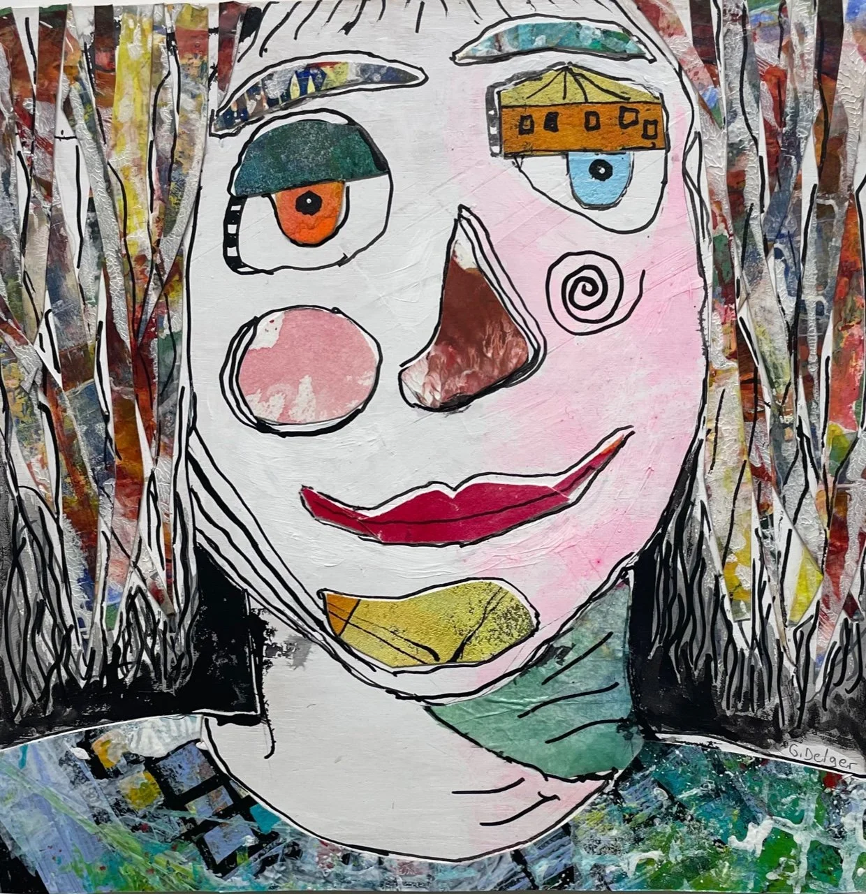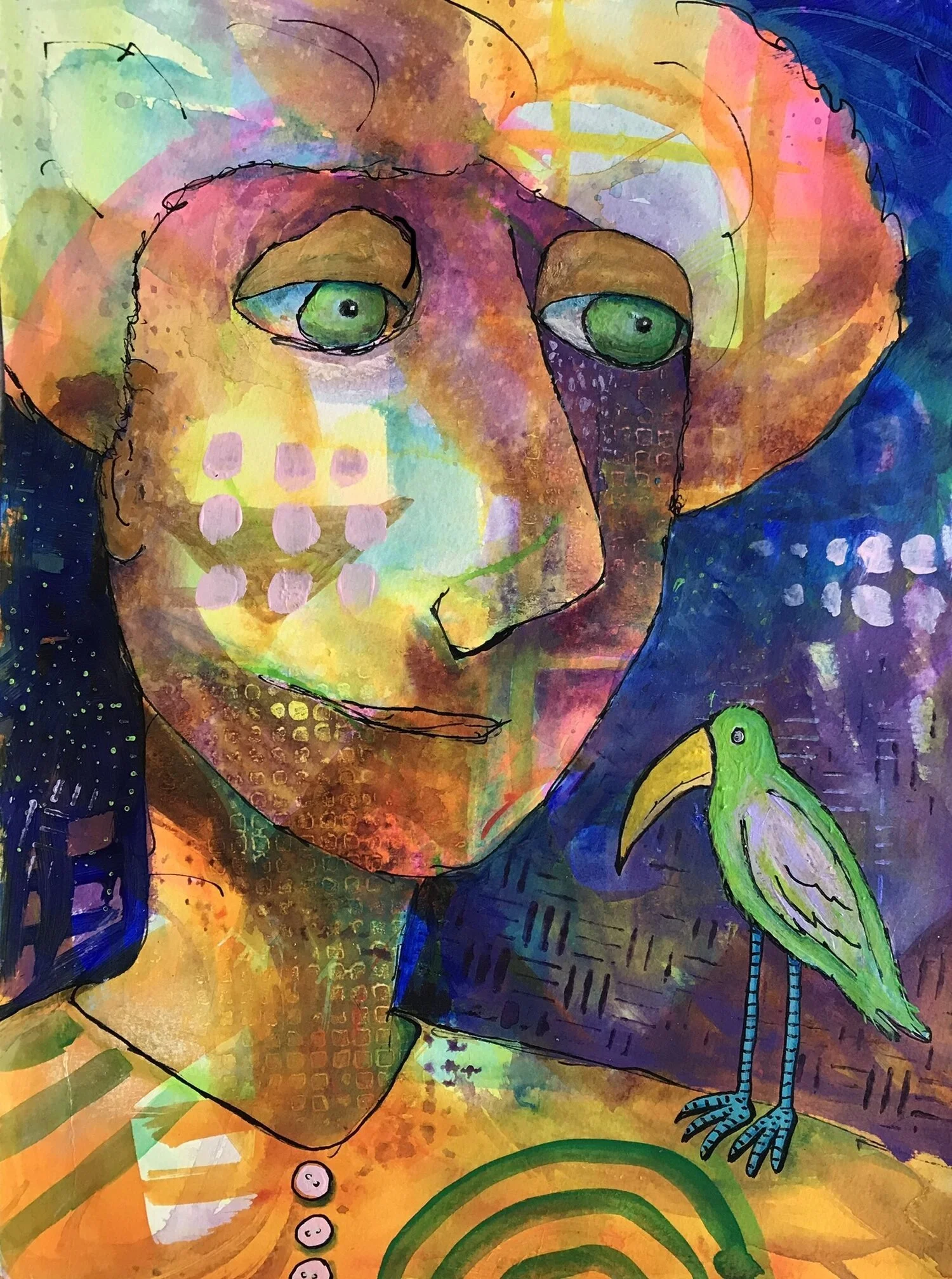 "Two Heads are Better than One" 16 x 20 Acrylic and collage on cradled panel.