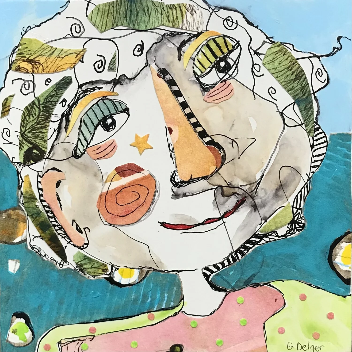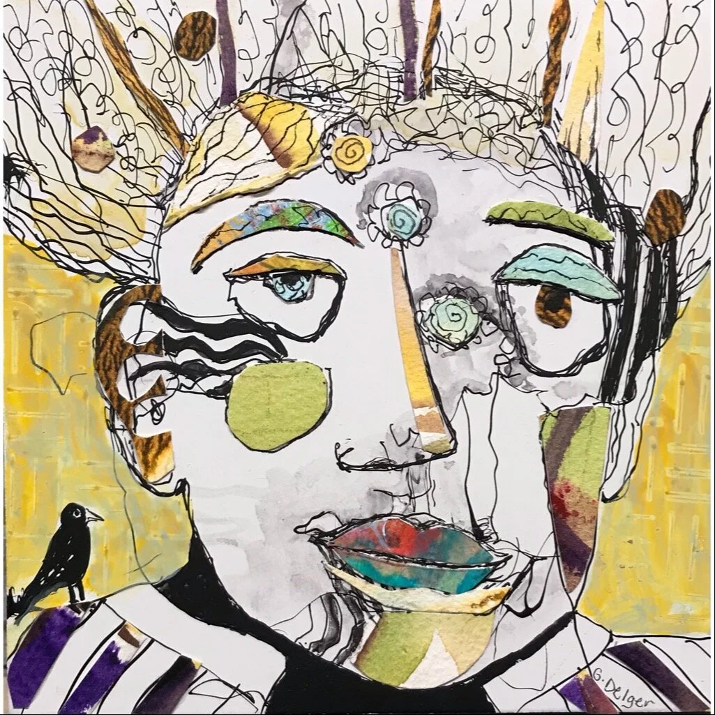 6” x 6” Acrylic collage on cradled panel.  SOLD