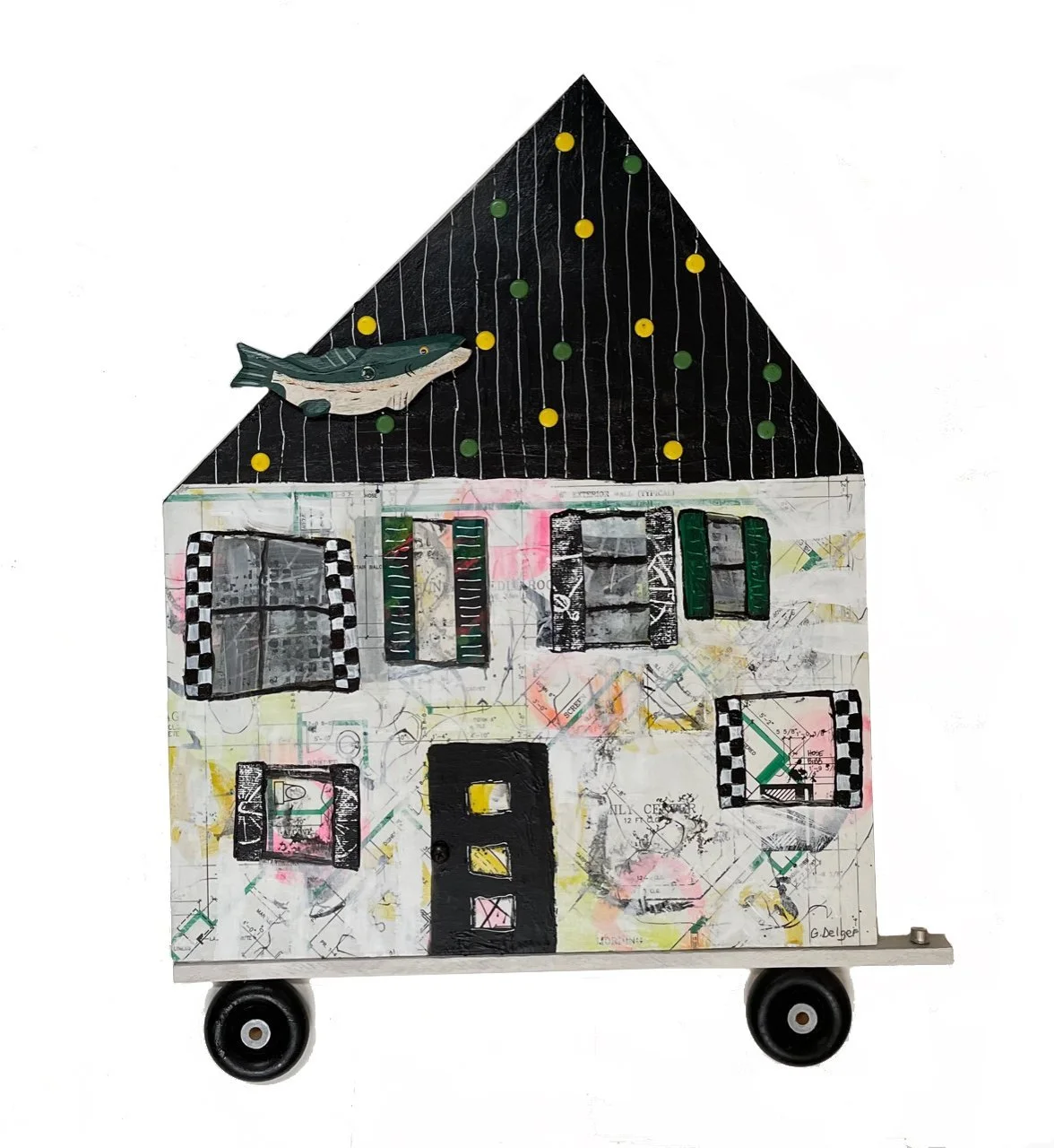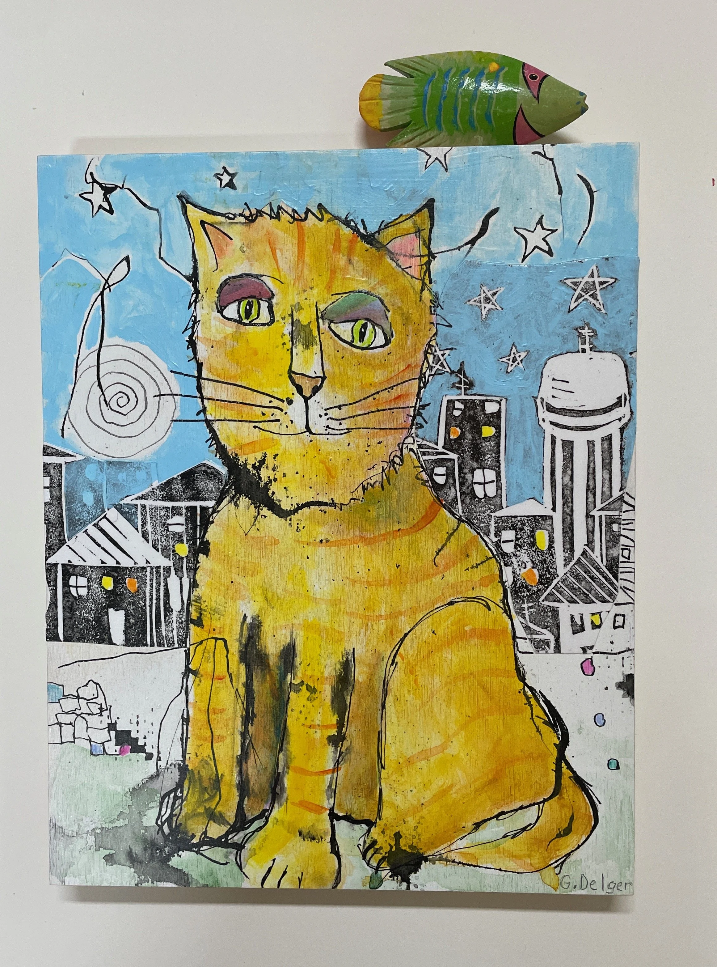 "Angler Fish II" 6" x 8" Acrylic and collage on a cradled panel.