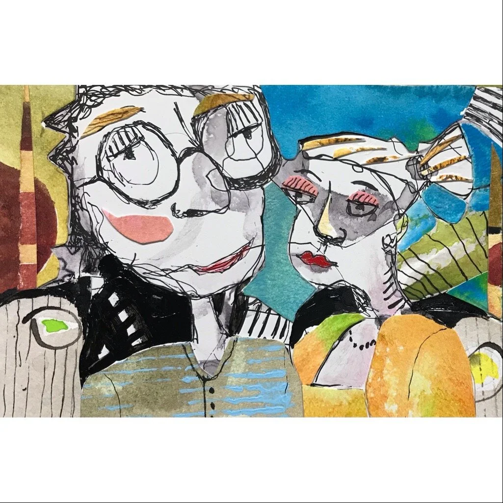 "Ert and Bernie" 16" x 16" Mixed Media on cradled panel.