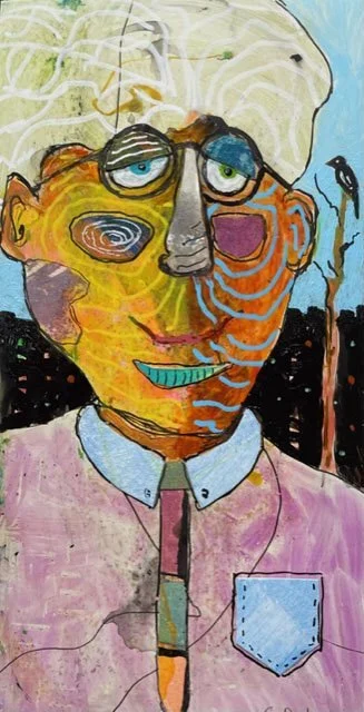 "He Has Those Chiseled Features" 16" x 16" Mixed Media on a cradled panel.